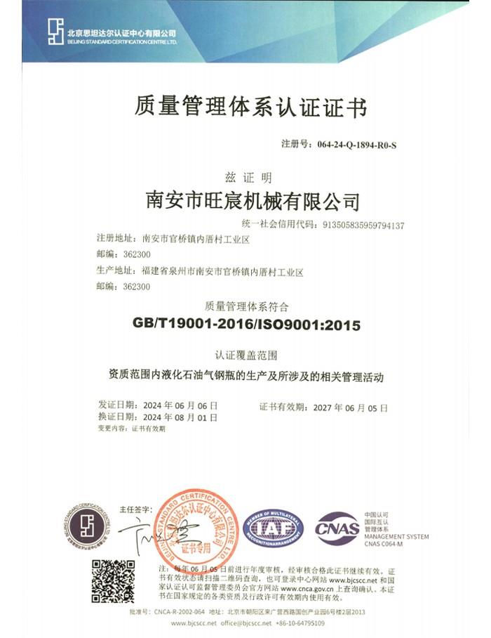 質量管理體系認證證書
